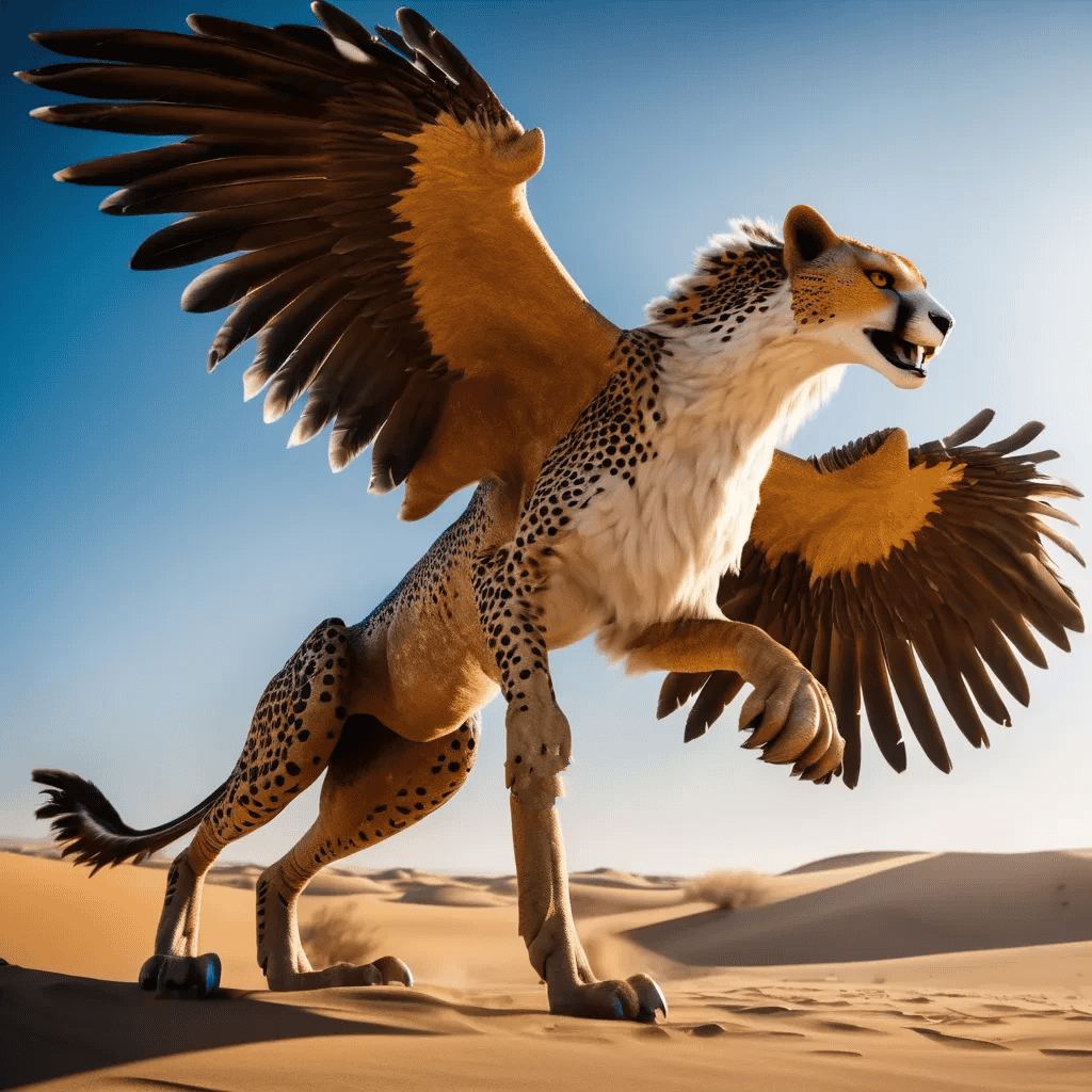 The Dunebreaker Gryphodon evolved over millennia, originating from coastal desert regions where resources were scarce. Faced with the challenge of surviving both on land and in water, it adapted, gradually developing the traits necessary to become a versatile and formidable predator. It now stands as a testament to the power of natural selection, representing an apex species capable of dominating two distinct ecosystems. By blending traits of land, sky, and sea creatures, the Dunebreaker Gryphodon is a master of adaptation, evolutionarily designed to survive—and thrive—in some of the planet’s most extreme environments.