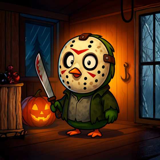 When the moon hits just right and the mist rolls in, Pengu switches into full slasher mode. Masked, machete-wielding, and dripping with meme menace