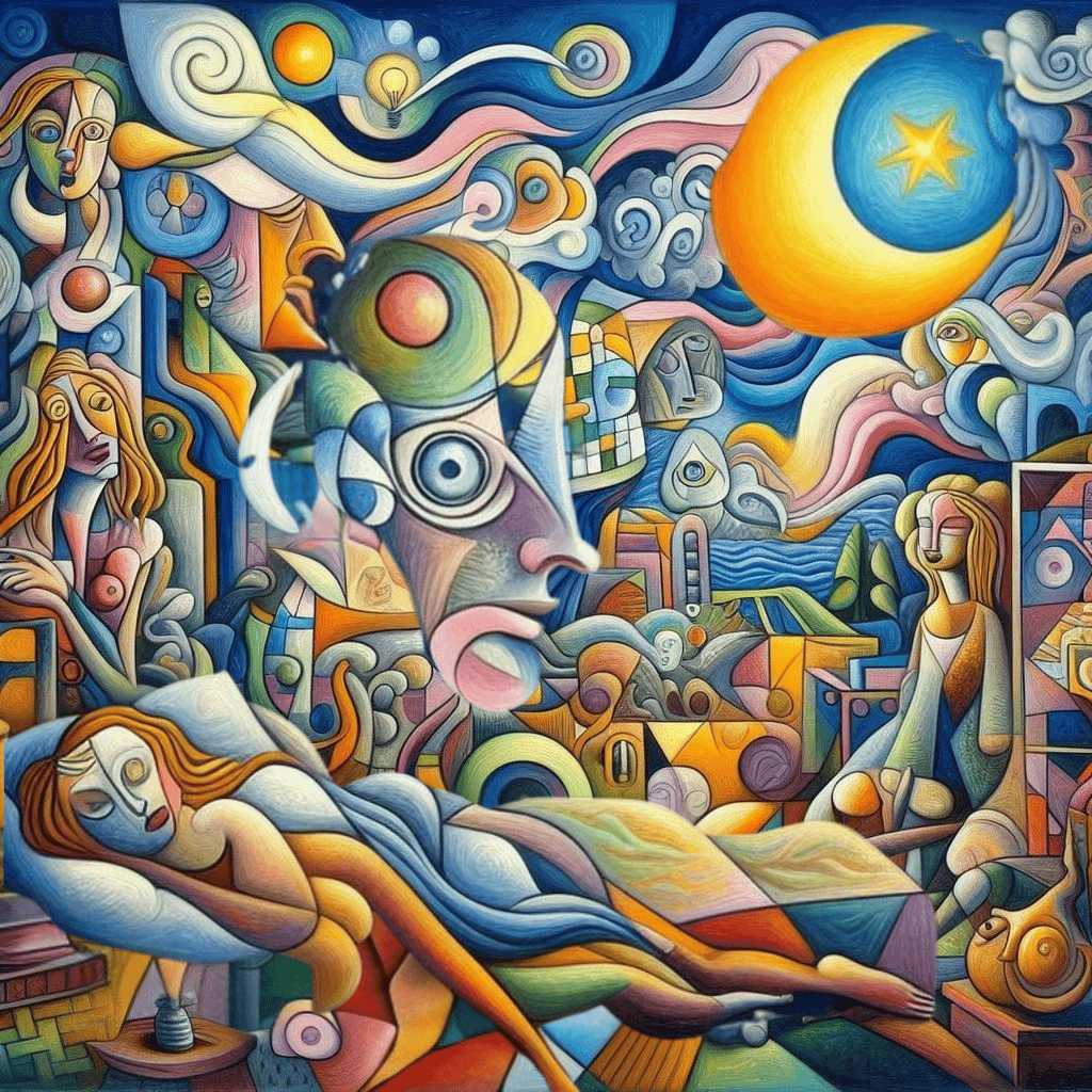 An abstract tapestry of swirling chaos and surreal fragments, where reality dissolves into incoherent whispers. Familiar shapes warp into unrecognizable forms, and vibrant colors collide in an unrelenting storm of disorder. There’s no clarity, no singular path—only an enigmatic labyrinth that captures the chaotic essence of dreamlogic, evoking a sense of unease and wonder. It is a visual paradox, as fleeting and baffling as the dreams we can barely recall. #DreamLogic